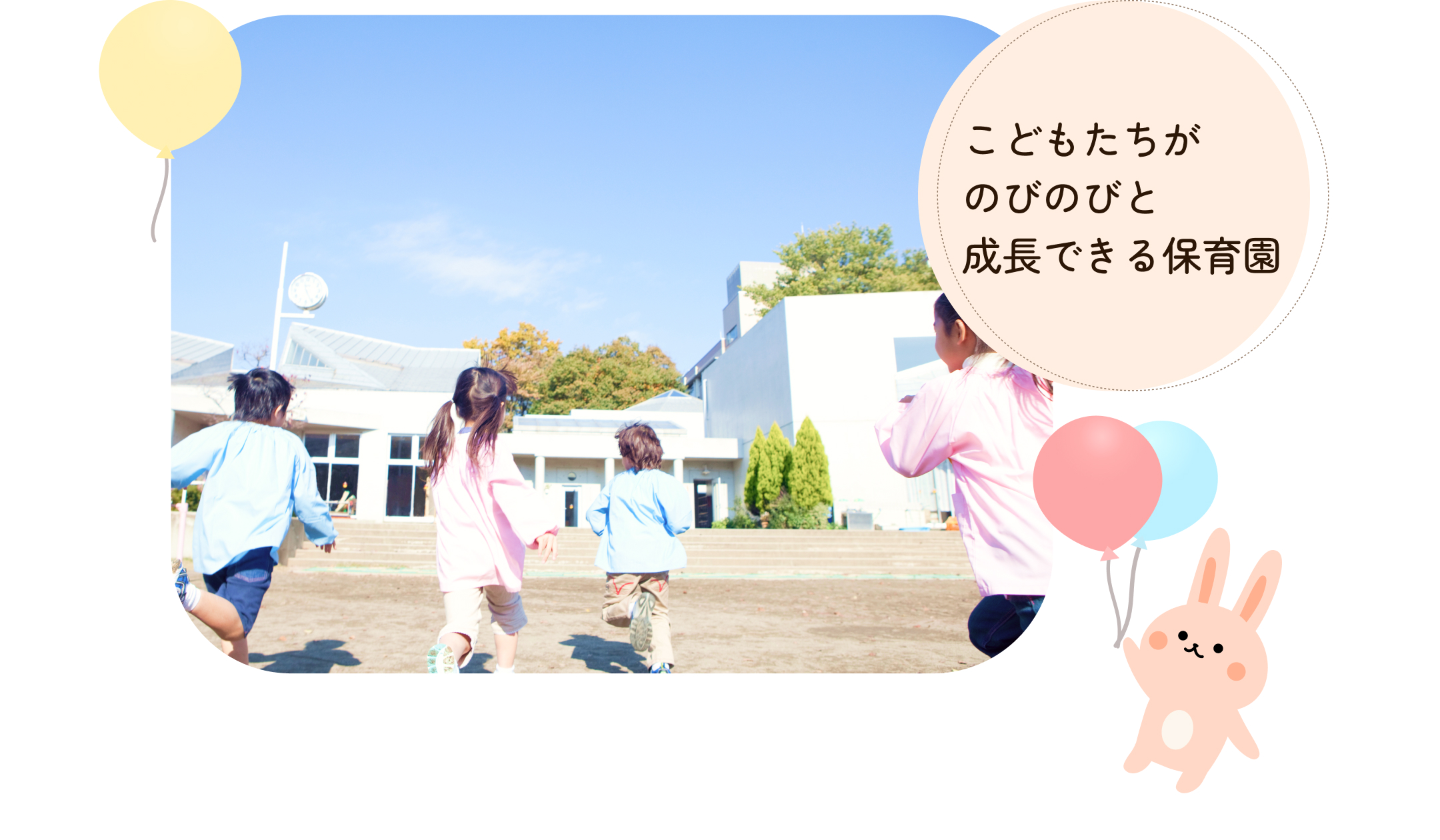 私たちの保育園のカリキュラムはバランスの取れた学びと遊びが組み合わさっており、知識や社会的なスキルの発達をサポートし、「のびのびと」成長できる保育園というコンセプトのもと教育をしております。